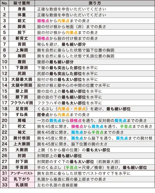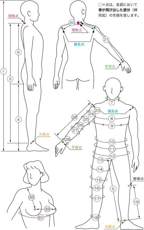 ・⾃然体を保持し、メジャーを締め過ぎず、体に沿わせるように計測してください。